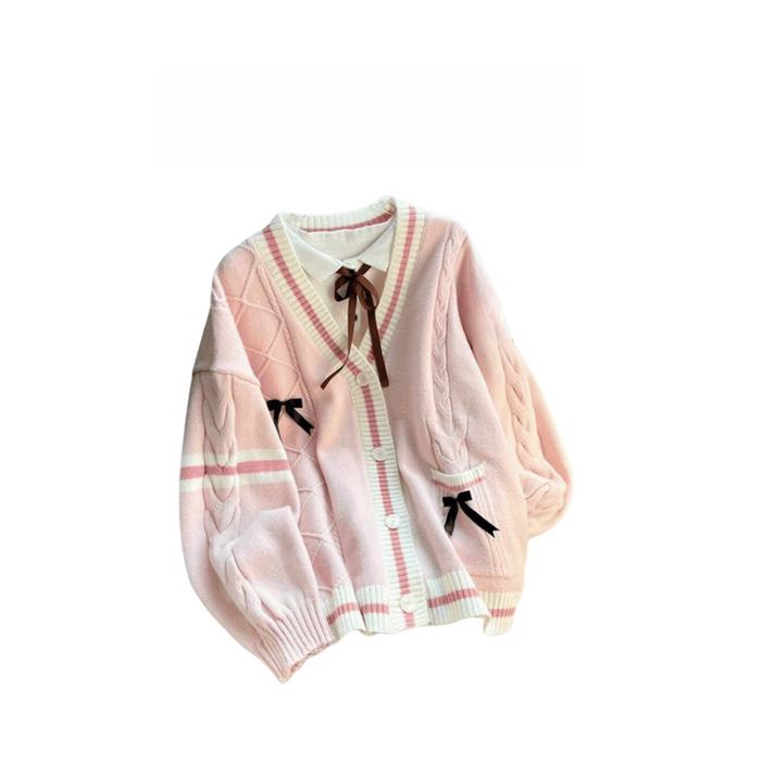 CARDIGAN RIBBON PITA COQUETTE ATASAN WANITA LENGAN PANJANG LONGSLEEVE BAJU OVERSIZE BESAR - PINK