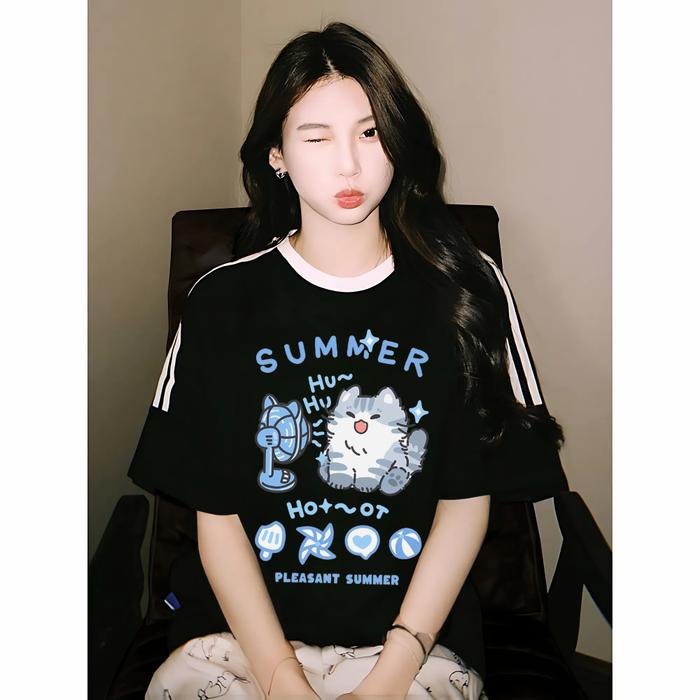 STREET PREMIUM T-SHIRT LENGAN PENDEK KAOS OVERSIZE TIGA GARIS KOREA PREMIUM 100 PERSEN KATUN | PLEASANT SUMMER STYLE PRIA WANI