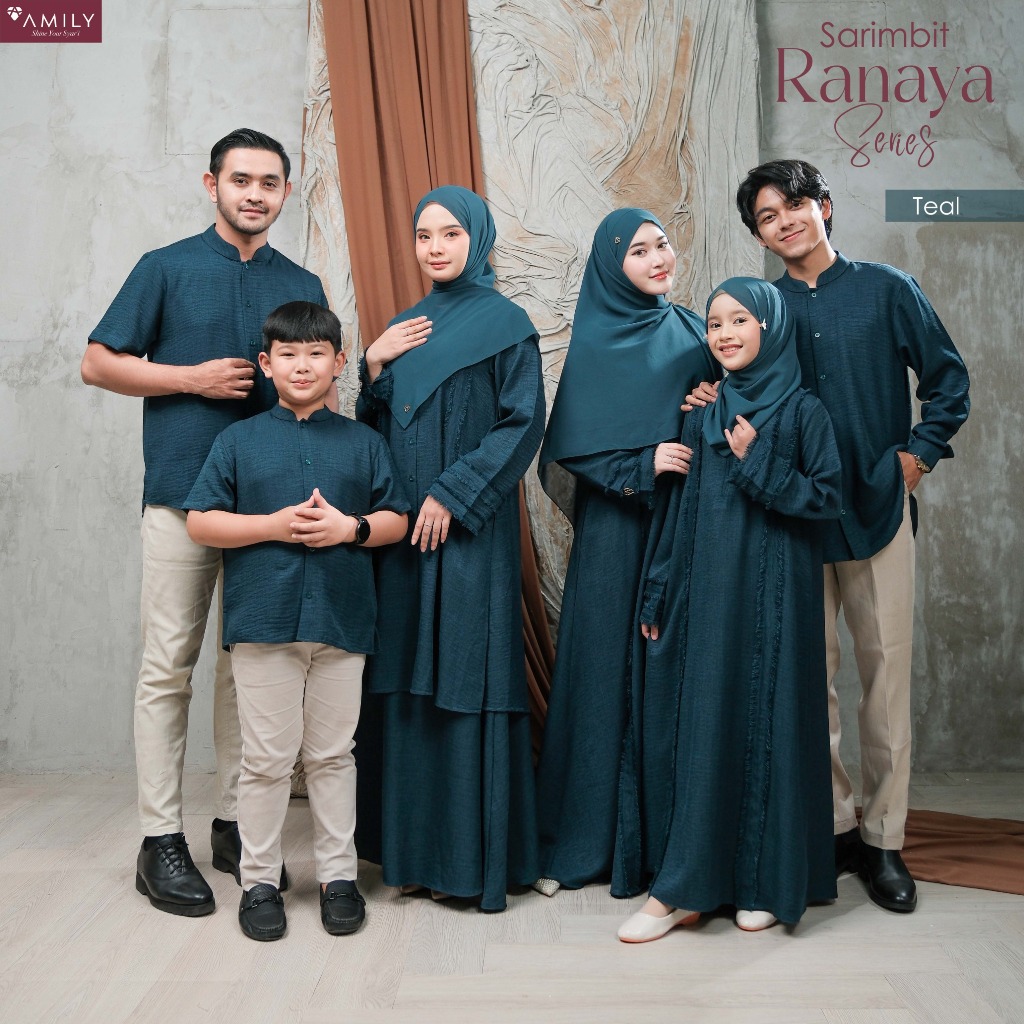 AMILY - [ STOCK] SARIMBIT LEBARAN 2026 RANAYA SERIES TEAL | FAMILY SET | BAJU COUPLE KELUARGA