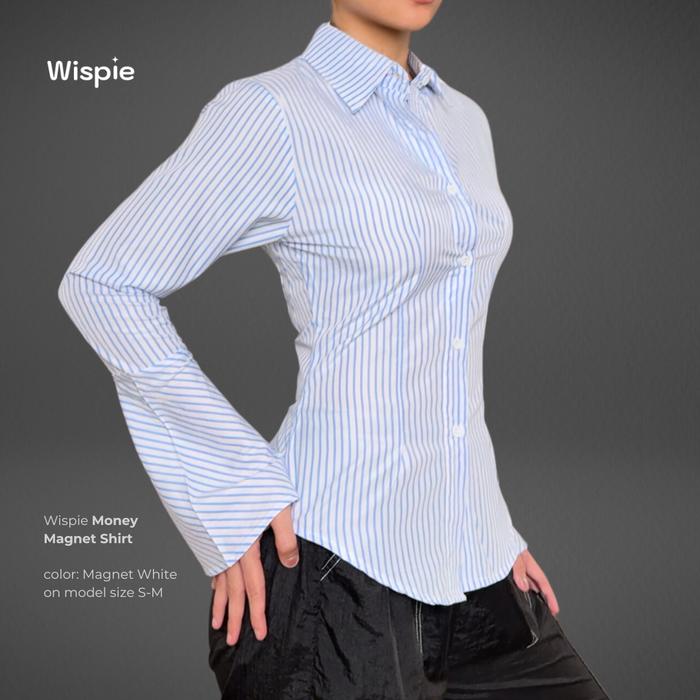WISPIE MAGNET FITTED SHIRT | KEMEJA KERJA WANITA PRESS BODY PINSTRIPE SALUR PINK BIRU BERKARET - MAGNET BLUE, FIT TO M
