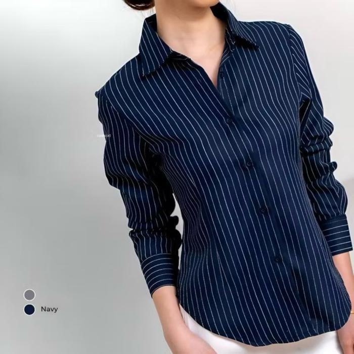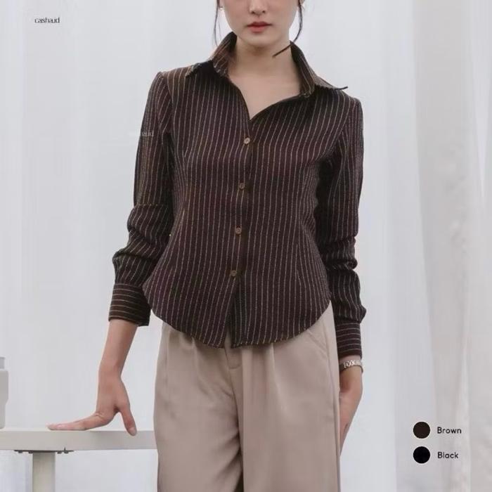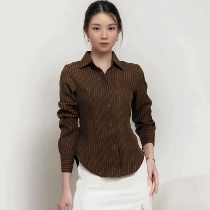 LUNA STRIPE KEMEJA FITTED // BAJU ATASAN WANITA WISPIE // BAJU ATASAN WANITA SALUR // BAJU ATASAN WANITA SLIM - MAHOGANY