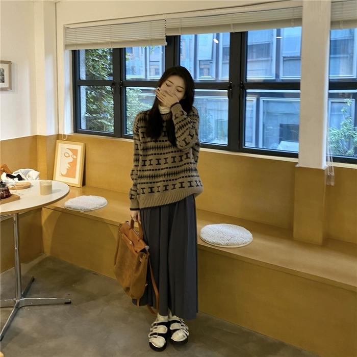 NURZHAFIRSHOP NOMI SWEATER RAJUT JACQUARD LONGGAR LEHER BULAT RAJUT WANITA TERBARU KNITWEAR CARDIGAN ATASAN T0P PANJANG