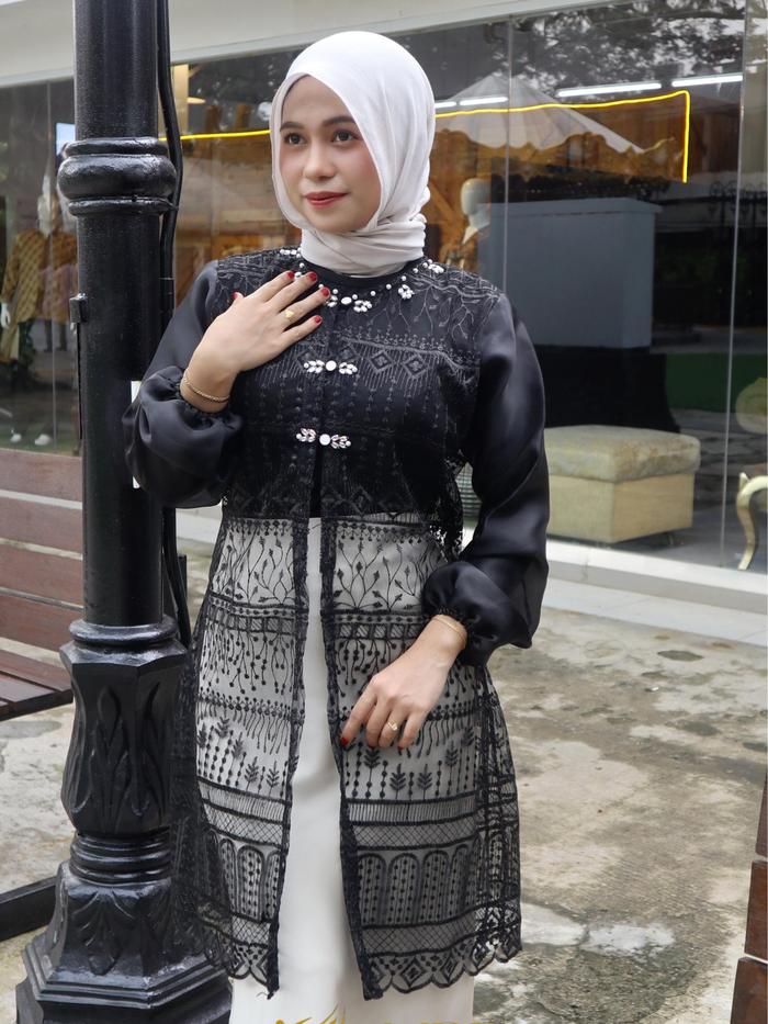 TULIP OUTER TUNIK CARDIGAN BROKAT KONDANGAN KEKINIAN. BRUKAT PESTA KOMBINASI TILLE BRUKAT DAN TALI KANCING PAYET daymen