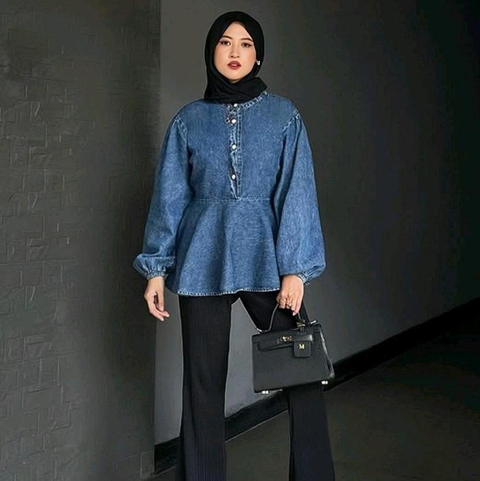 POLA WEAR AEERA BLOUSE DENIM WANITA ATASAN KEMEJA JEANS NYAMAN FORMAL LENGAN PANJANG PEPLUM OVERSIZE BAJU SANTAI SOFT JE