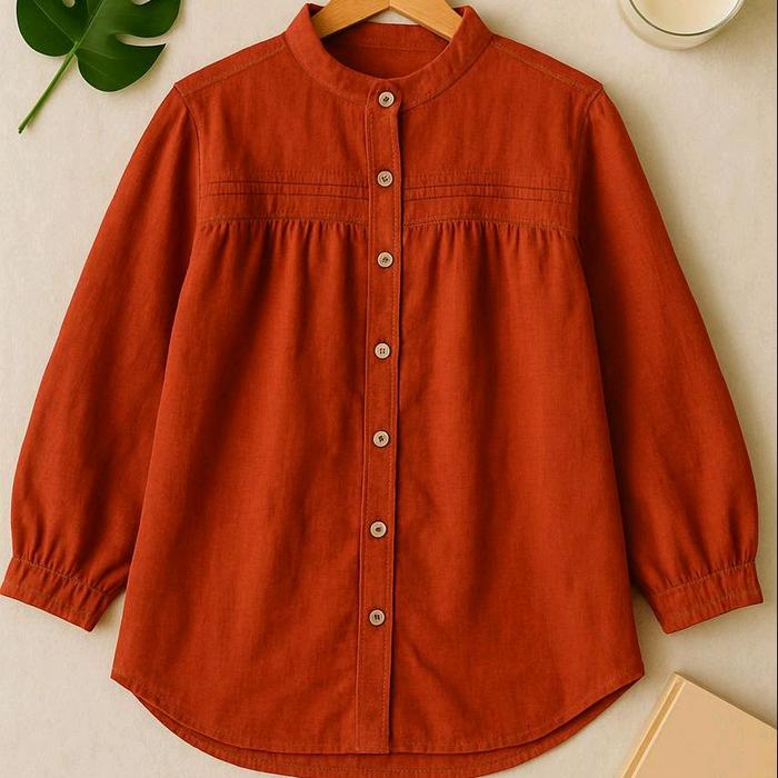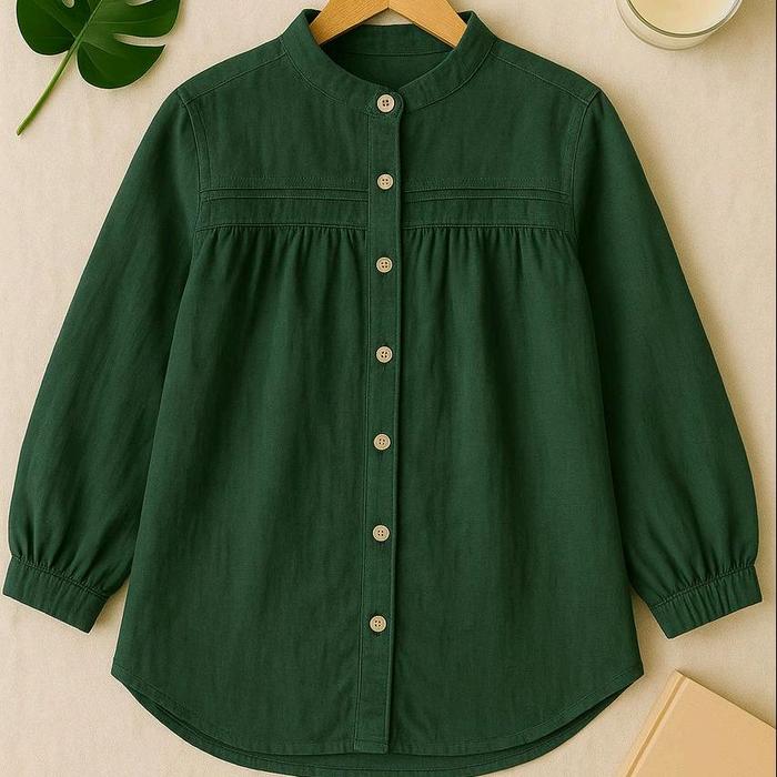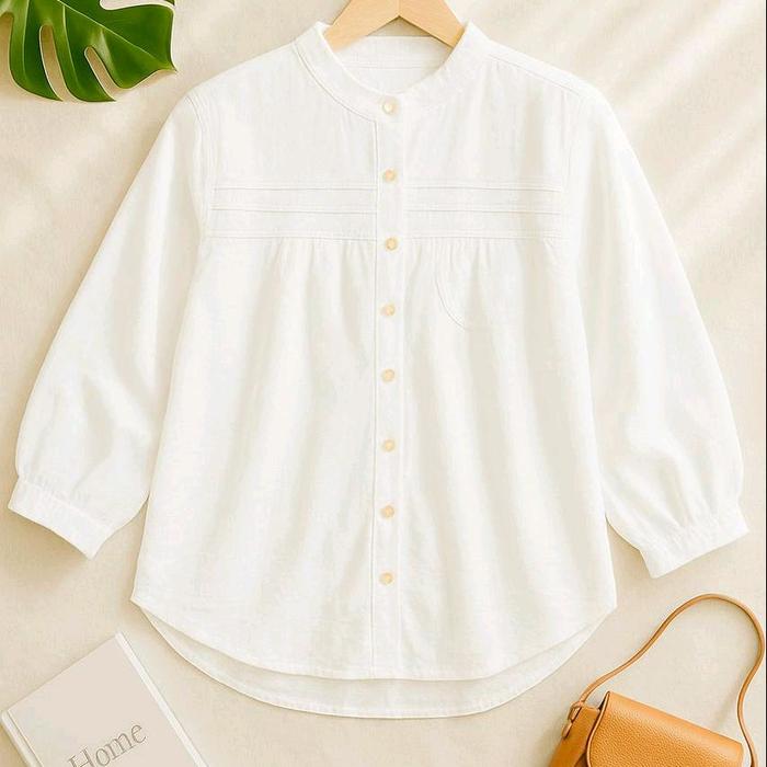LAURA BLUS KOREA RUFFLE ATASAN KEMEJA WANITA PUTIH UKURAN L, XL, XXL - BROKEN WHITE, LD. 110 CM (STANDAR / L, XL)