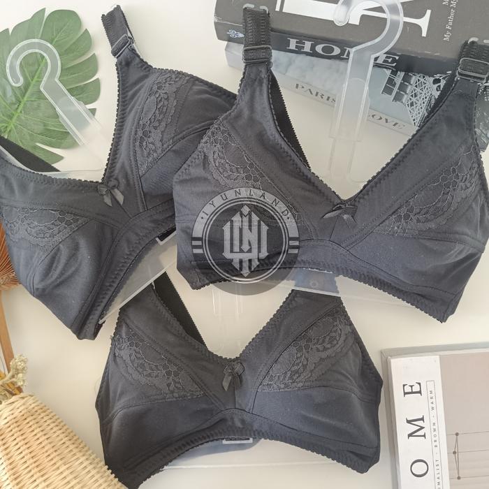 3PCS BRA BH RENDA CUP BESAR BH LOKAL KAIT 2 TANPA BUSA TANPA KAWAT BROKLAT BRA HITAM BH HITAM MOTIF RENDA - 3PCS BHLOKAL
