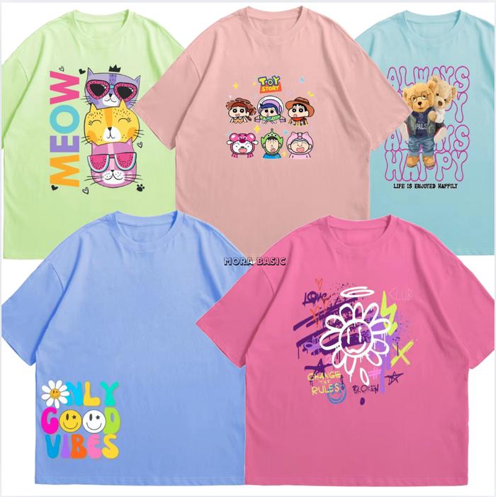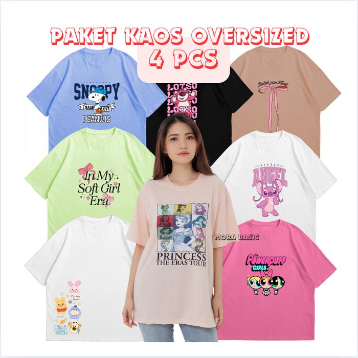 MORA - PAKET 4 PCS KAOS DISTRO WANITA OVERSIZED BABY TERRY 24S' - KAOS HARIAN WANITA - OVERSIZED TEE WANITA - OVERSIZED