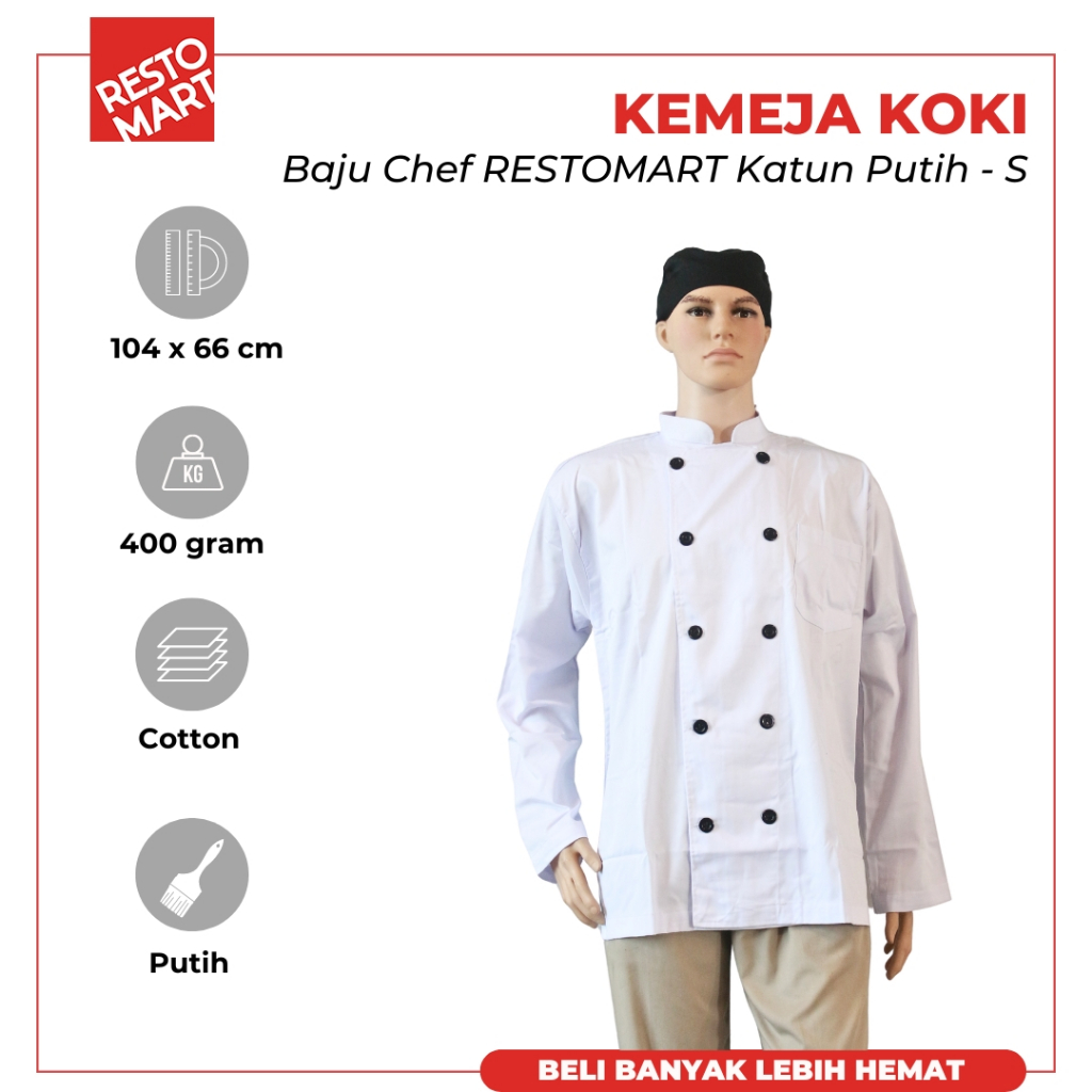 FLASH SALE Seragam Chef Baju Chef Kemeja Koki Lengan Panjang Putih RESTOMART Katun Berkualitas (1394169) (1394170) (1394171) (13