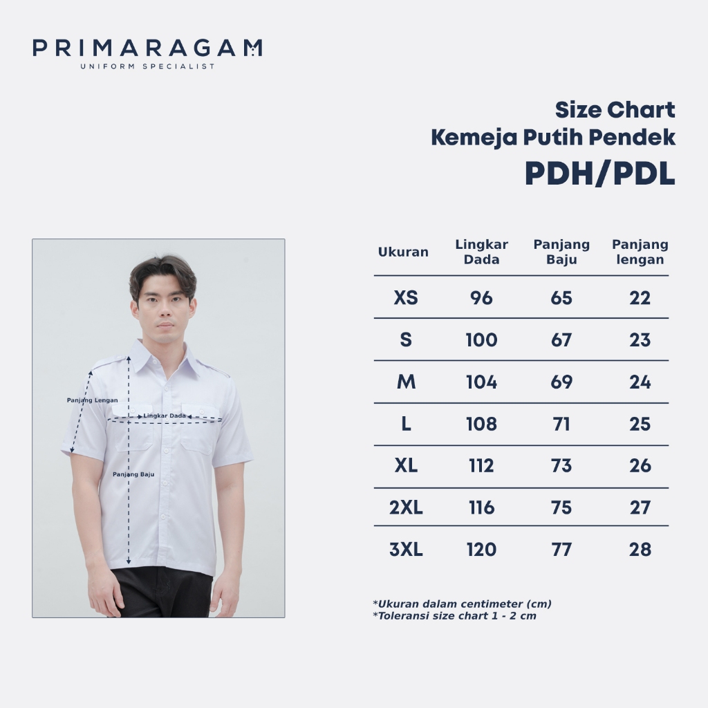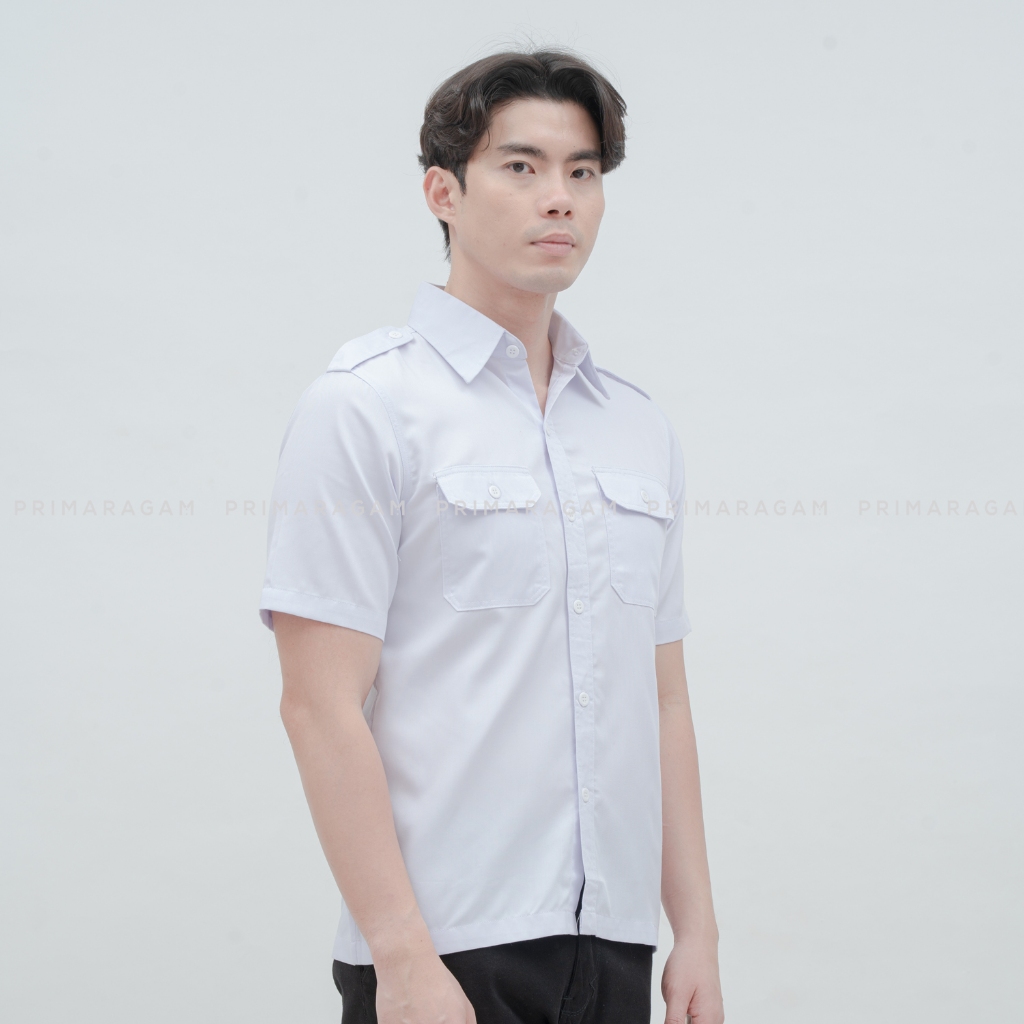 FLASH SALE Primaragam Baju Pdh Putih Pria Pendek Kantong 2 Kemeja Seragam Pns Asn Dinas Pilot Wanita Laki Laki