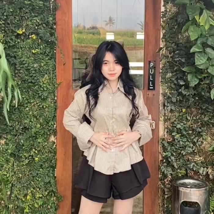 KEMEJA STRIPE RAMPEL FIT BODY WANITA ATASAN - BLACK, S (LD 90CM)