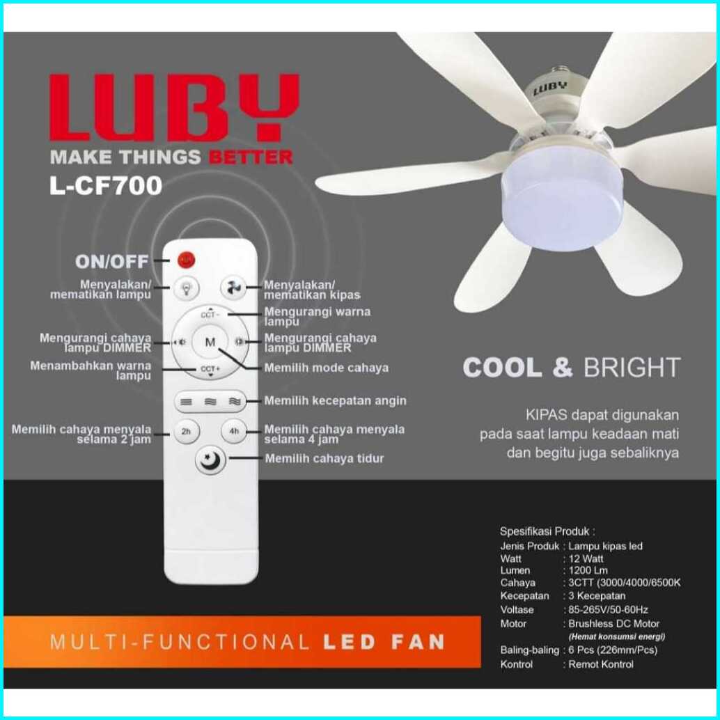 Kipas Angin Plafon Luby Lampu 2in1 Lampu Kipas Remote Yang Dapat Diredupkan Dengan Lampu Led Putih