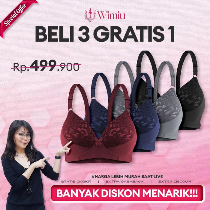 WIMIU HEMAT 4PCS BH WANITA BRA WANITA TANPA KAWAT KATUN MIX BUSA NYAMAN 001370 RENDA BUSA MOTIF TIPIS LEMBUT - RANDOM, 3