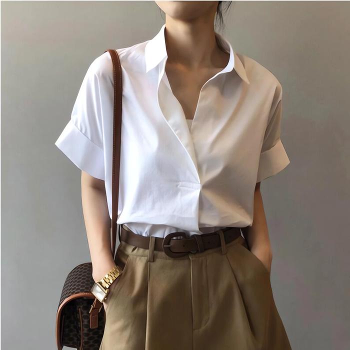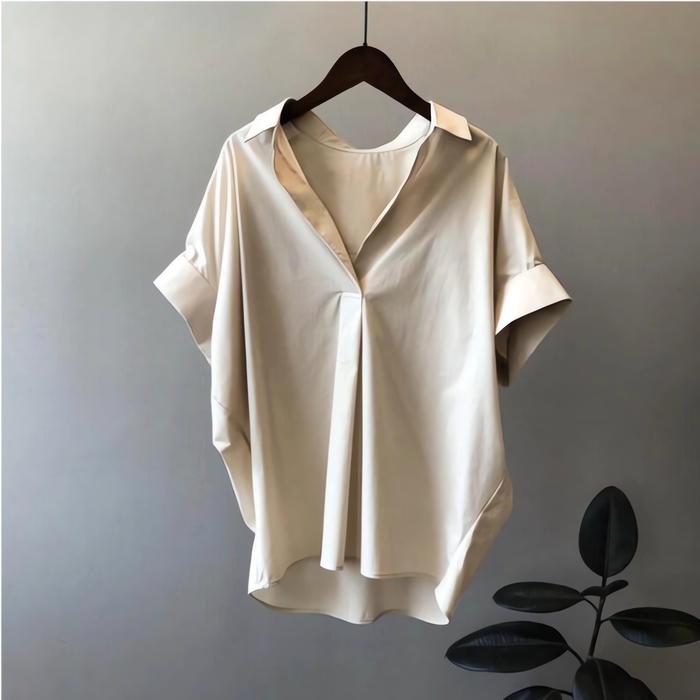 BAJU ATASAN WANITA - COCOA T0P - KEMEJA SANTAI KATUN TWILL - KEMEJA SHIRT CASUAL KOREAN STYLE V-NECK POLOS KERAH NYAMAN