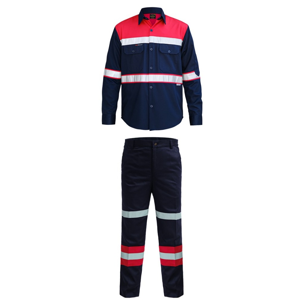 FLASH SALE MokoWorkwear Setelan Celana dan Kemeja Navy Red