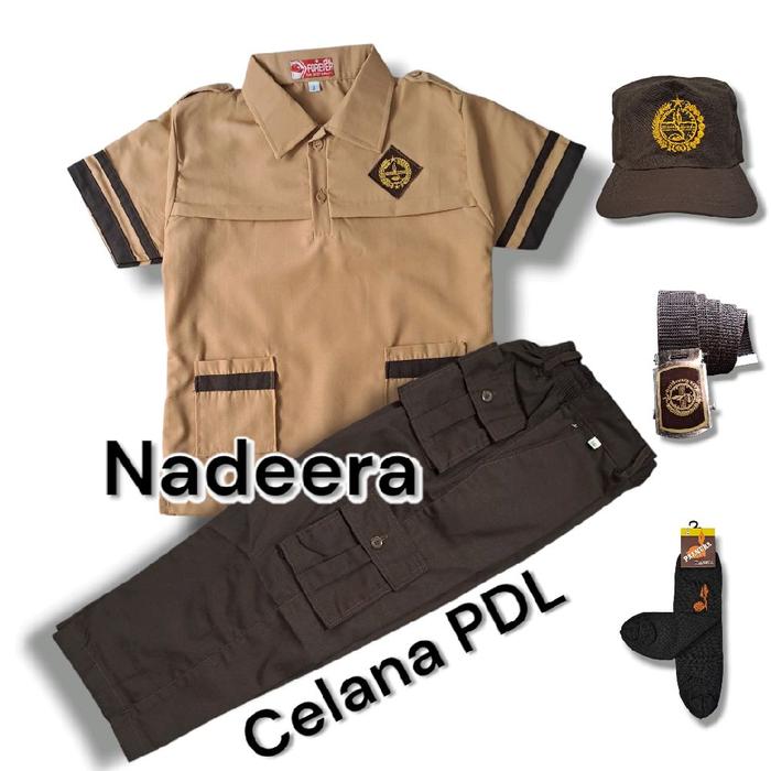 SETELAN SERAGAM SEKOLAH PRAMUKA SD ANAK LAKI BAJU SIAGA LENGAN PENDEK CELANA PRAMUKA PDL - SET PAKAI TOPI, 6 THN