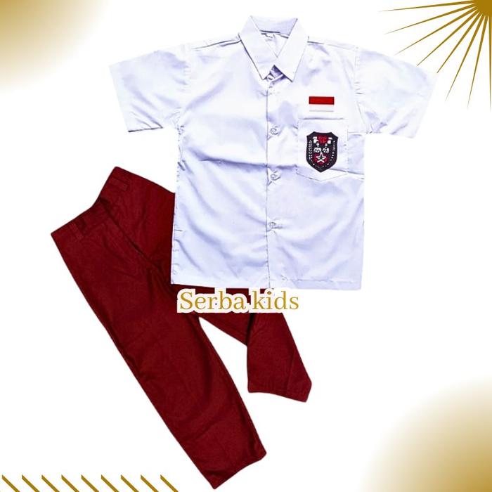 SETELAN SERAGAM SEKOLAH SD MERAH PUTIH LENGAN PENDEK FASHION - SET MERAH PUTIH, 6 TAHUN