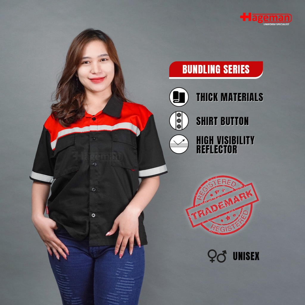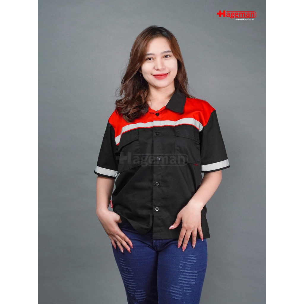 FLASH SALE Hageman Atasan Strike Warna Hitam Kombinasi Merah Lengan Pendek