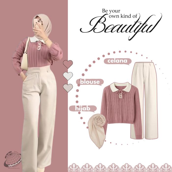 ONE SET SETELAN WANITA 3IN (SWEATER KNIT +CELANA KNIT + HIJAB SEGI EMPAT) ONE SET KEKINIAN LI091 - 3IN1