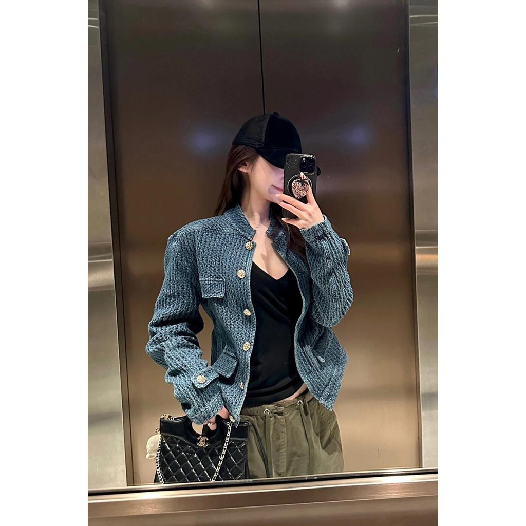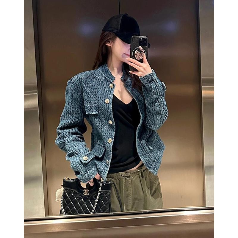 Jaket Denim Gaya Chanel untuk Wanita, Jaket Fashion Kasual Serbaguna Baru