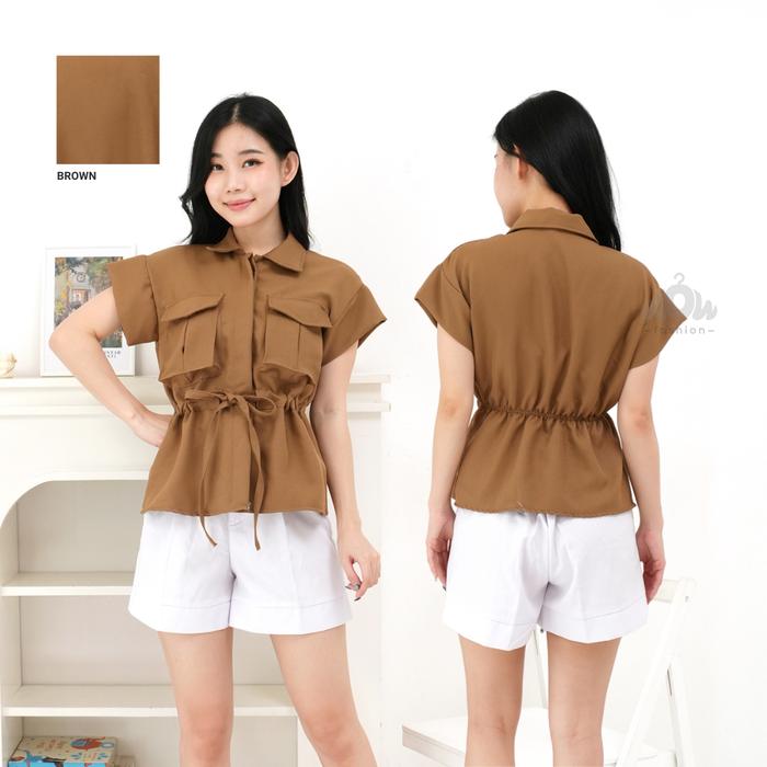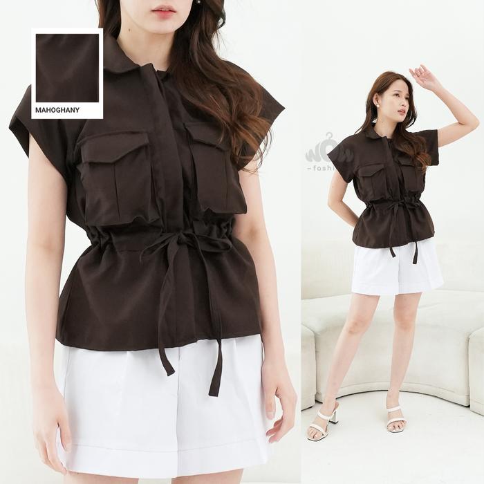 WOW-YUAN T0P OUTER TANGAN PENDEK ATASAN ROMPI KEKINIAN SEMIWOLL BAJU KERJA KANCING KARET LEMBUT VARIASI BUSUI FRIENDLY C