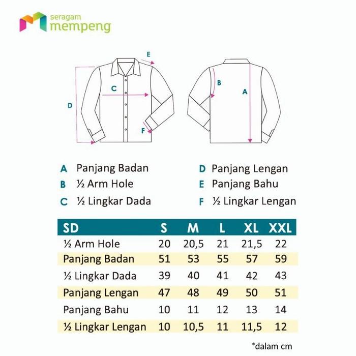 SERAGAM SEKOLAH KEMEJA SD PUTIH LENGAN PANJANG - OXFORD - S