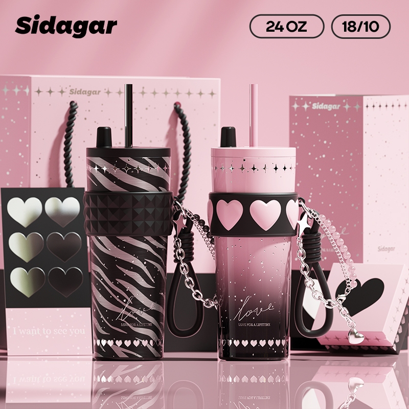 Sidagar 710ML 316 Stainless Steel Cold and hot Thermos Insulated Vacuum Water Flask Portable Water Bottle with Straw