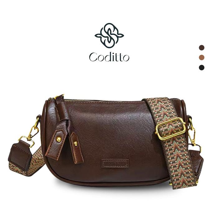ITTO TAS SELEMPANG WANITA MODEL 2025 BOSTON HITAM TALI BAHU LEBAR RITSLETING LOGAM BAHAN BERKUALITAS TINGGI PENYESUAIAN