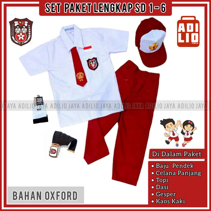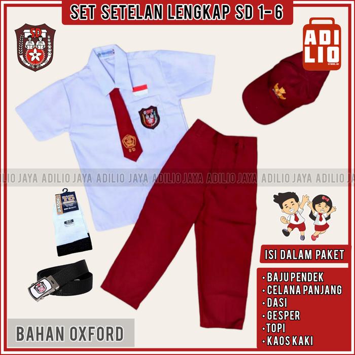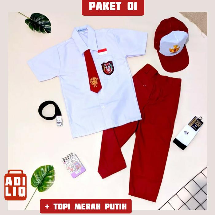 SETELAN SUPER LENGKAP SERAGAM SEKOLAH BAJU SD PENDEK CELANA MERAH PANJANG ANAK COWOK - PAKET-01, KELAS1