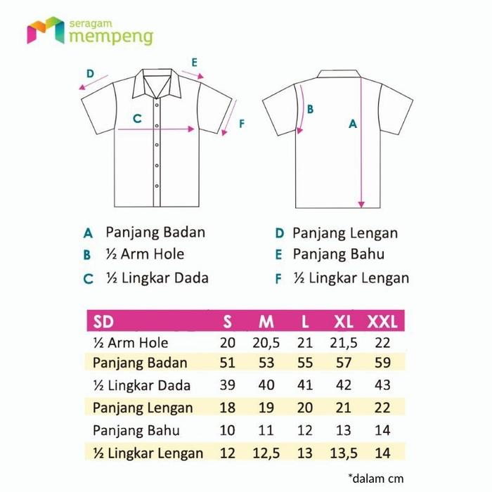 KEMEJA PUTIH SD LENGAN PENDEK - OXFORD - S