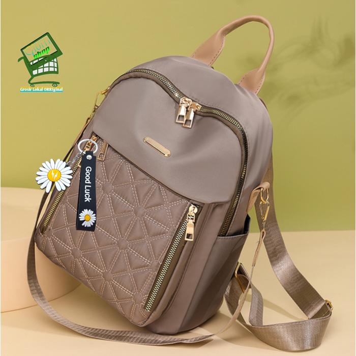 TAS RANSEL WANITA MULTIFUNGSI FASHION BACKPACK KOREA ANTI AIR - SEKOLAH, PEREMPUAN - KHAKI
