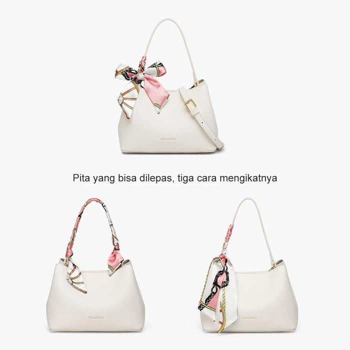 NALANDU TAS SELEMPANG WANITA TAS BAHU WANITA ELEGAN TAS BUCKET SEDERHANA KULIT - WHITE