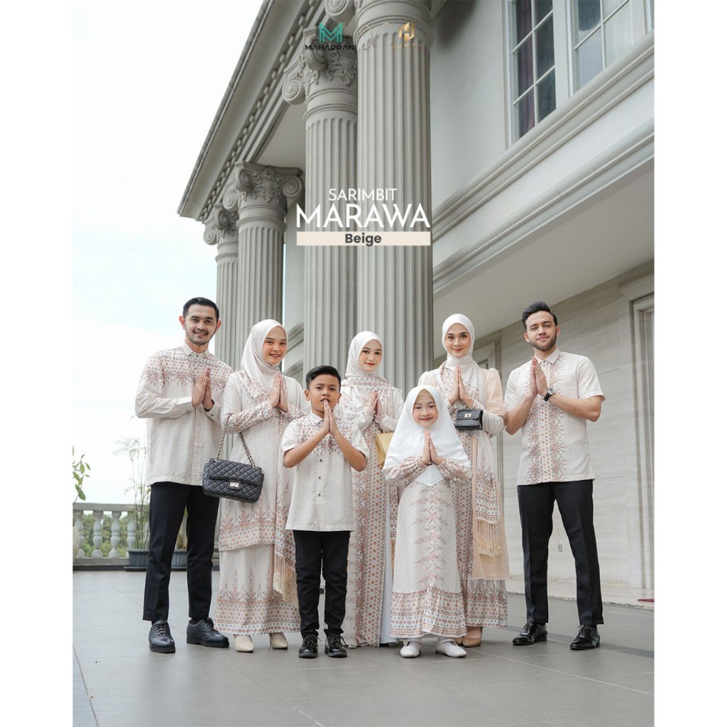 SARIMBIT LEBARAN 2026 MARAWA BEIGE BY MAHARRANI X HAMKA INDONESIA , COUPLE KELUARGA, FAMILLY SET
