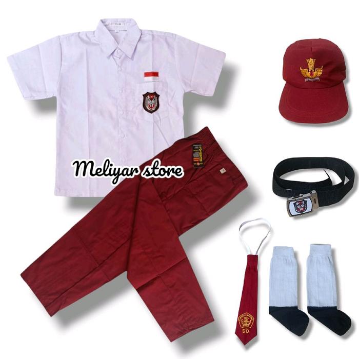 MELIYAR STORE SETELAN SERAGAM SEKOLAH SD LAKI-LAKI MERAH PUTIH BAJU LENGAN PENDEK CELANA PANJANG FASHION OXFORD NAGATEX