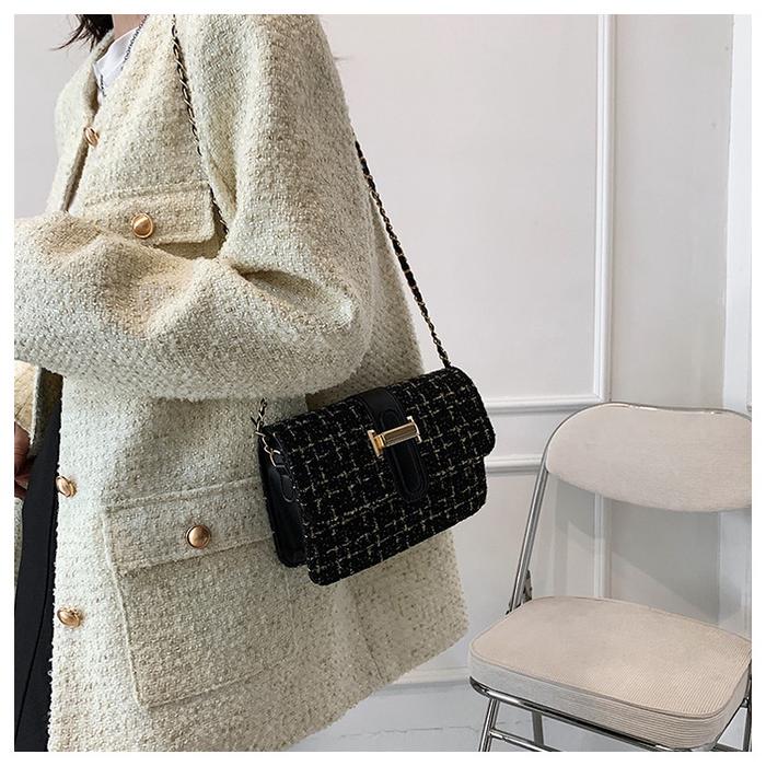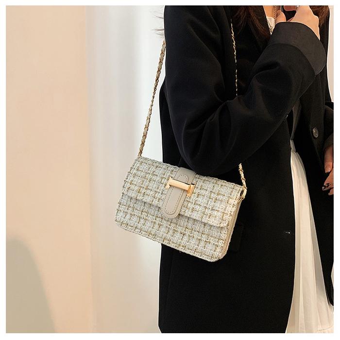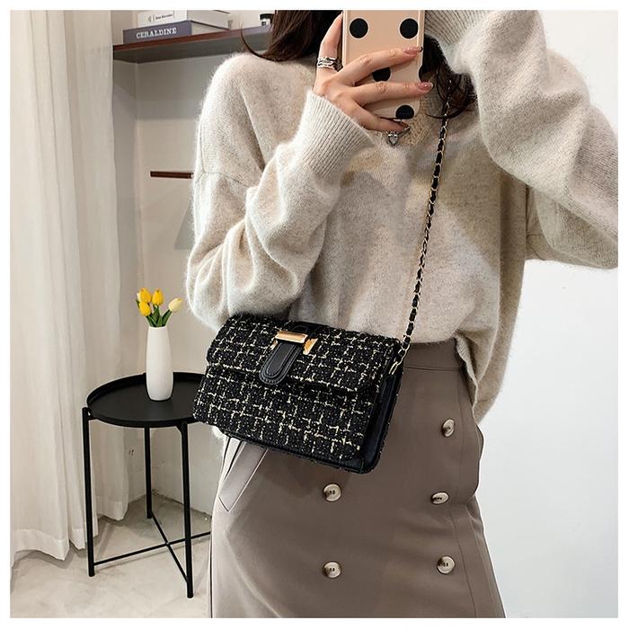 BAO012 TAS WANITA TAS STYLE RAJUT RAMI SELEMPANG WANITA TALI RANTAI TAS SELEMPANG TWEED BAG RANTAI 60lld5 FASHION KULIT