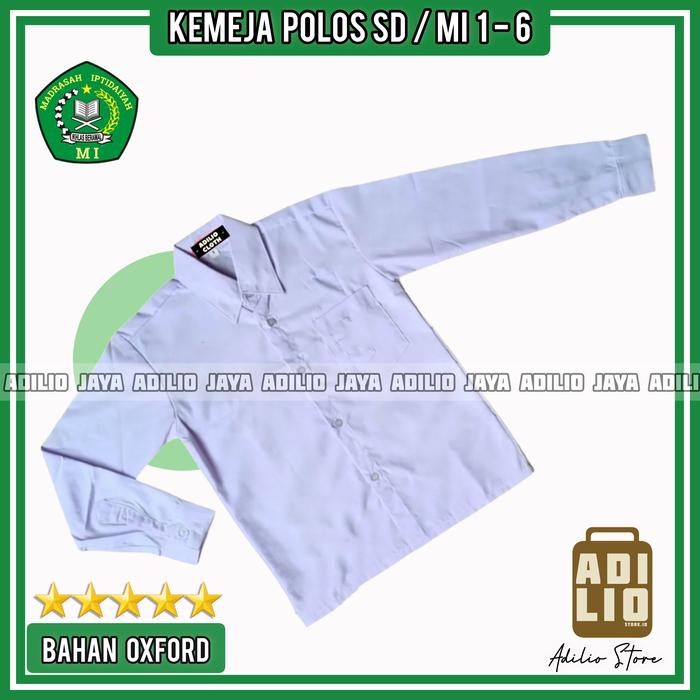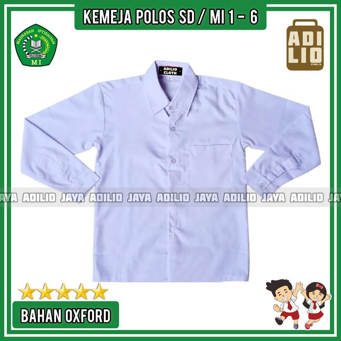 KEMEJA PUTIH POLOS LENGAN PANJANG SERAGAM SEKOLAH SD MI - PUTIH POLOS, SIZE 7