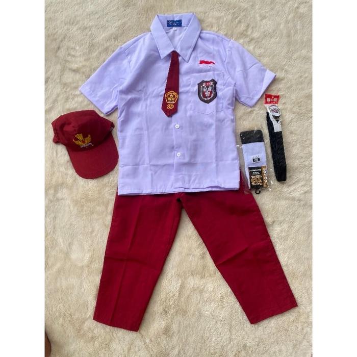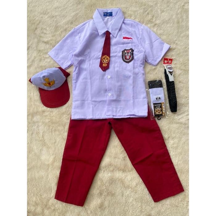 STELAN SUPER LENGKAP SERAGAM SEKOLAH SD LENGAN PENDEK MERAH PUTIH ANAK COWOK BAJU SETELAN FASHION - SET LENGKAP, KELAS 1