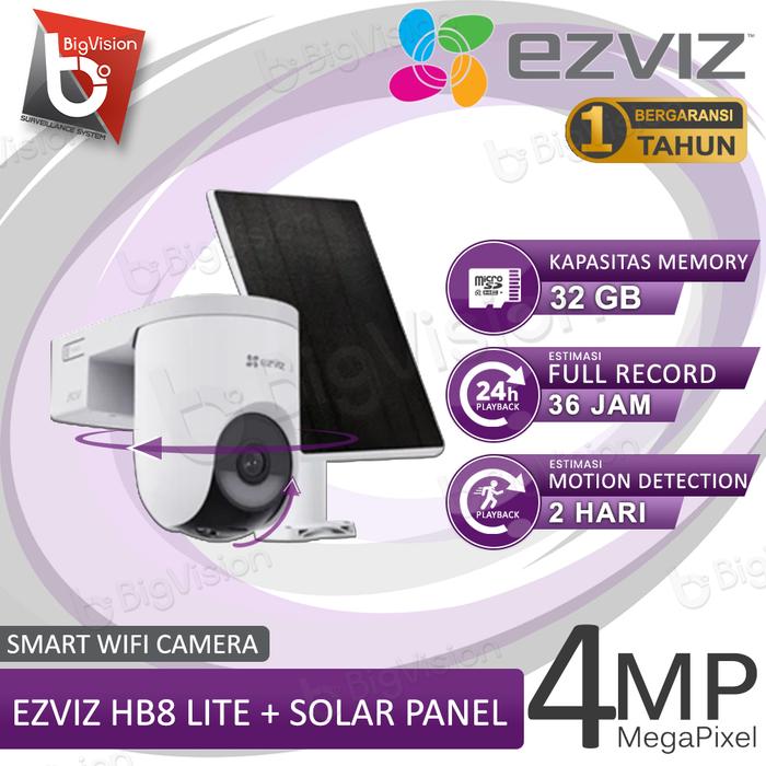 BATERAI CCTV EZVIZ HB8 4MP SOLAR PANEL CCTV PINTAR LUAR RUANGAN ROTASI SIRENE - TANPA MEMORY