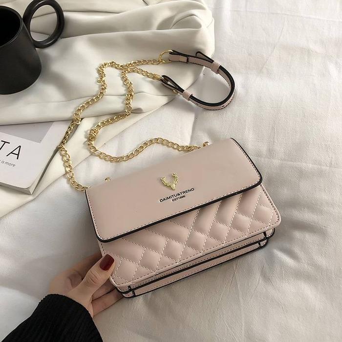 TAS SELEMPANG WANITA TALI RANTAI / SLINGBAG WANITA TALI LANTAI SHOULDER BAG WANITA TGJ066 HITAM,PUTIH,PINK BAHAN KULIT