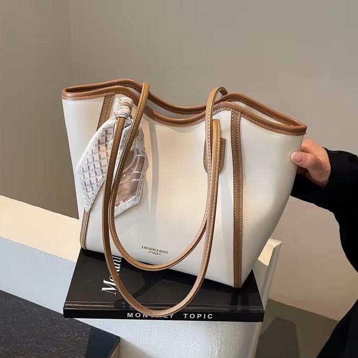 TAS TOTEBAG WANITA KERJA LESTARI KULIT SINTETIS TERBARU DENGAN DESAIN MODERN & SYALL GRATIS UNTUK GAYA ELEGAN SEHARI-HAR