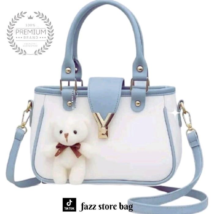 TAS LATTE TAS WANITA TERBARU . FREE GANTUNGAN BONEKA. . - PUTIH KOMBI PINK