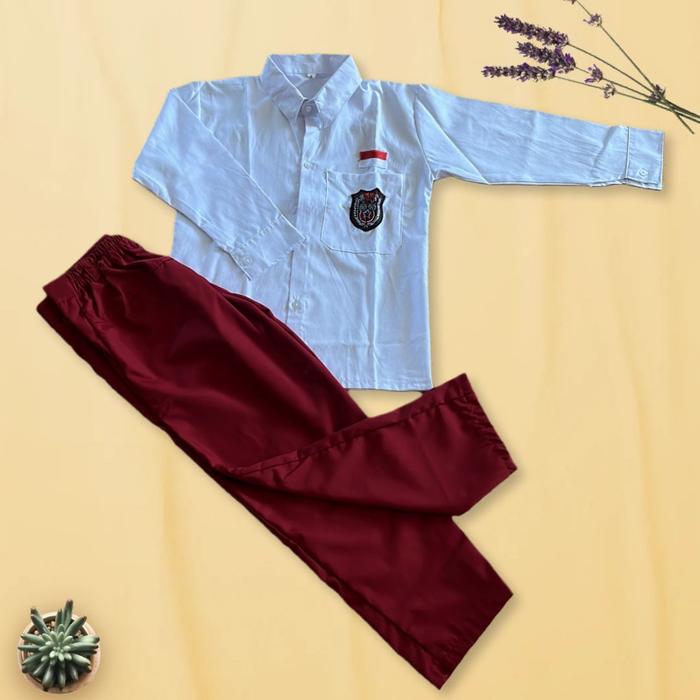 BAJU SETELAN SERAGAM SEKOLAH SD MERAH PUTIH TERMURAH USIA 7-13 TAHUN - TANGAN PANJANG, 7 TAHUN
