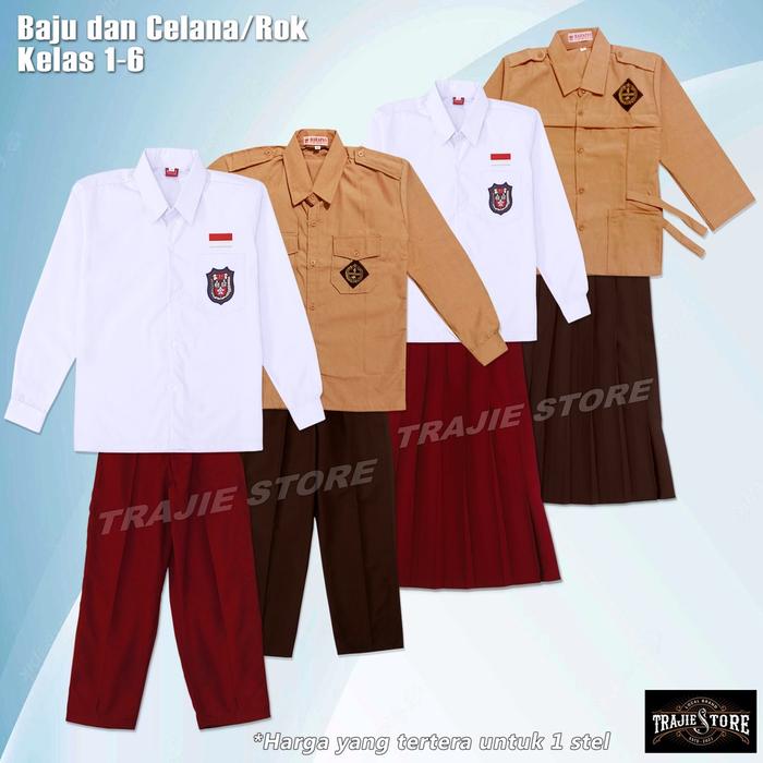 SETELAN SERAGAM SEKOLAH SD MERAH KEMEJA PUTIH COKELAT PRAMUKA SETELAN ANAK LAKI LAKI PEREMPUAN BAJU LENGAN PANJANG CELAN