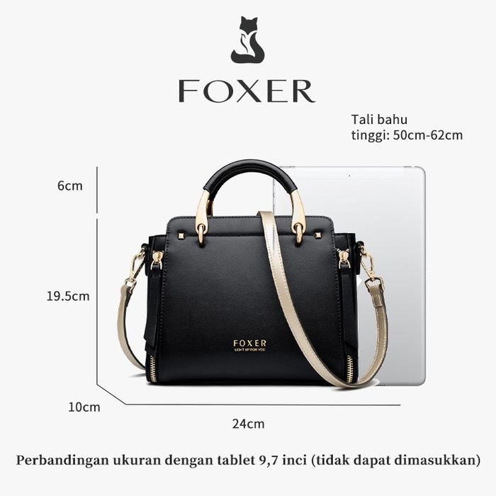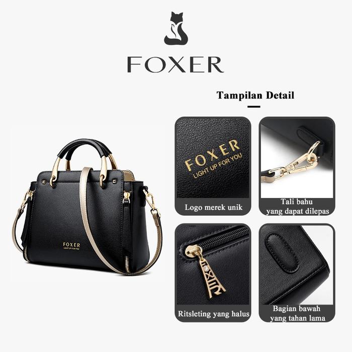 FOXER TAS TANGAN KULIT ASLI TAS BAHU WANITA TAS SELEMPANG DENGAN TALI BAHU YANG DAPAT DISESUAIKAN - HITAM