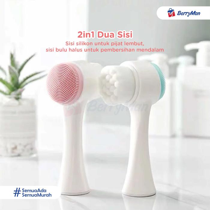 SIKAT PEMBERSIH WAJAH SILIKON 2 IN 1 FACIAL CLEANSING BRUSH ALAT CUCI MUKA & MEMBERSIHKAN KOMEDO - BULAT PINK