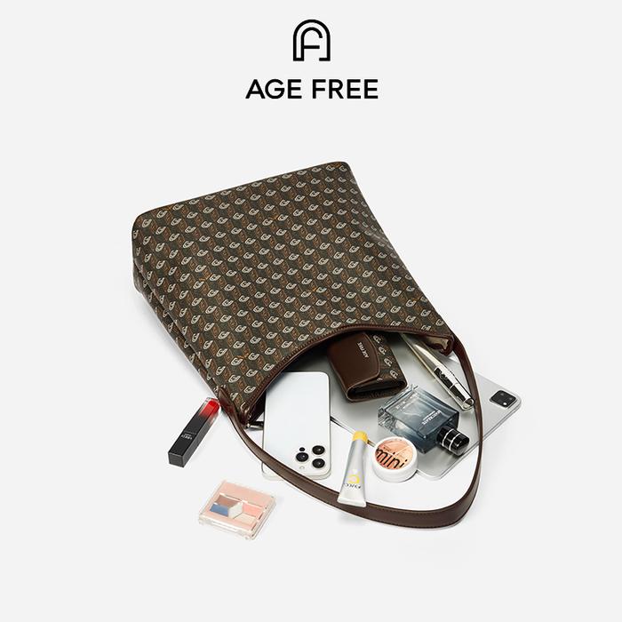 AGE FREE FREE CLASSIC HOBO BAG TAS BAHU WANITA TOTE BAG TAS SELEMPANG SHOULDER BAG HITAM PUTIH TOTEBAG - DARK BROWN