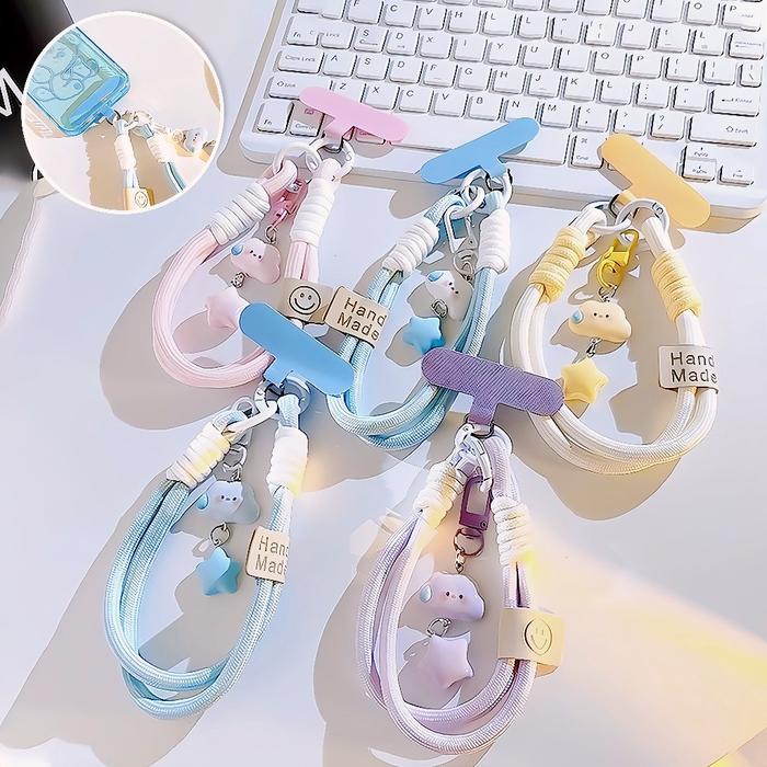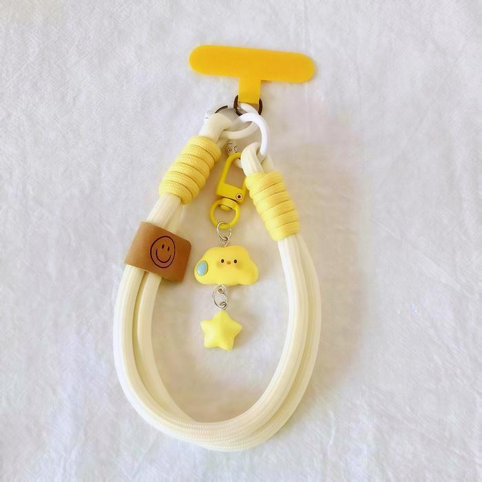 Gantungan HP Lucu [Tali Pendek & Liontin] Motif Awan Bintang - Aesthetic Korea Universal untuk Semua HP - Kuning