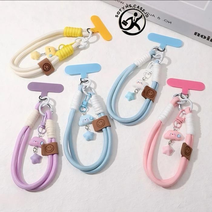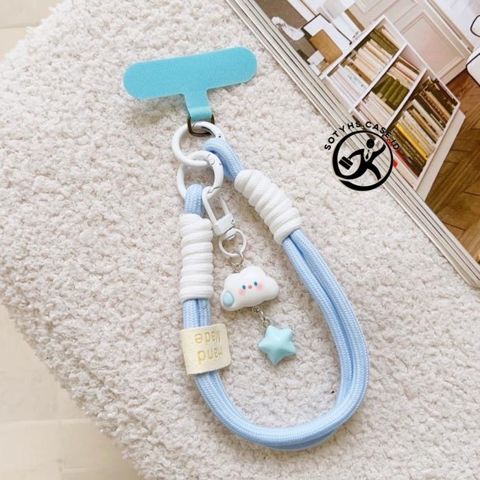 Tali HP Lanyard Universal Bisa Cross-Tangan Gantungan Hp Macaron Motif Bintang Awan - PS-BLUE CLOUD