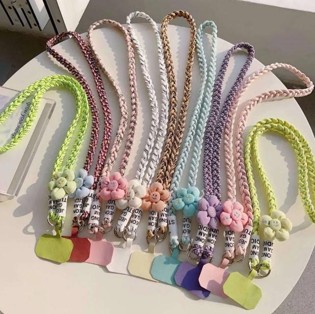 Crossbody Lanyard Breided Premium Lanyard HP Panjang Tali Hp Gantungan Hp Strap Hp - kepang bunga biru