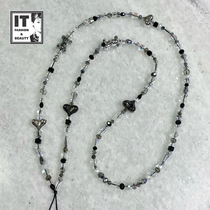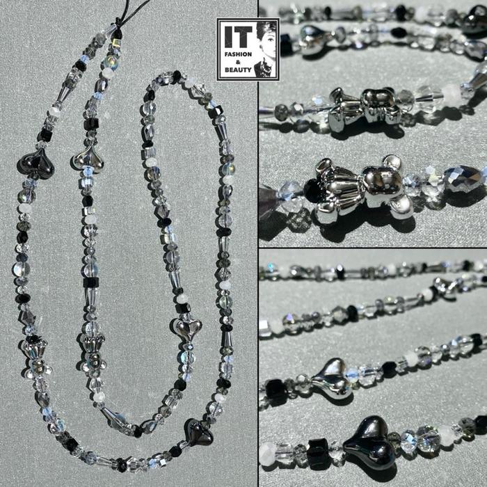 Phone Strap Crossbody Sling Crystal Gantungan Handphone Kristal - Monochromatic Bearbrick Love