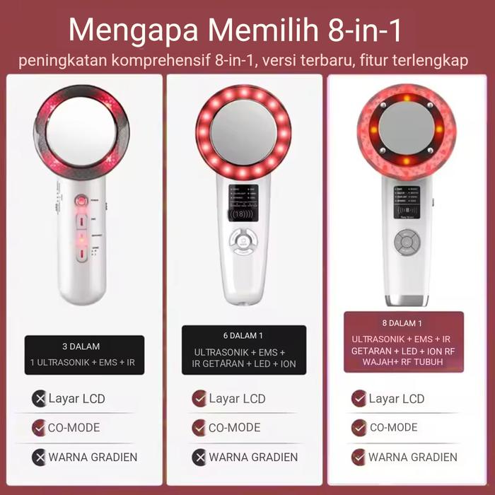 BEAUTY MACHINE & MASSAGER MULTIFUNCTION 8 IN 1 ALAT KECANTIKAN MENGENCANGKAN KULIT & PERAWATAN WAJAH TUBUH DENGAN EMS SO